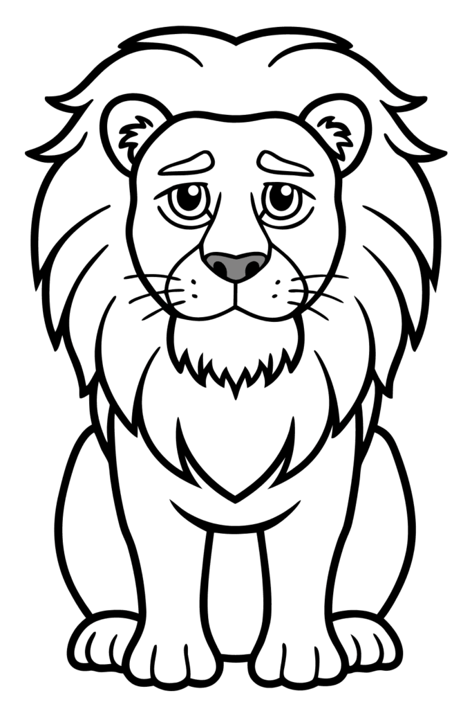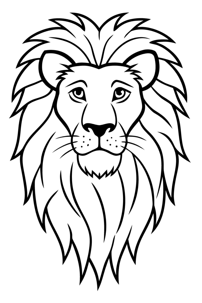 El estilo de caricatura con dignidad real hace que este león sea imponente pero accesible. Es perfecto para practicar melenas voluminosas y capturar majestuosidad natural de los leones machos dominantes.
