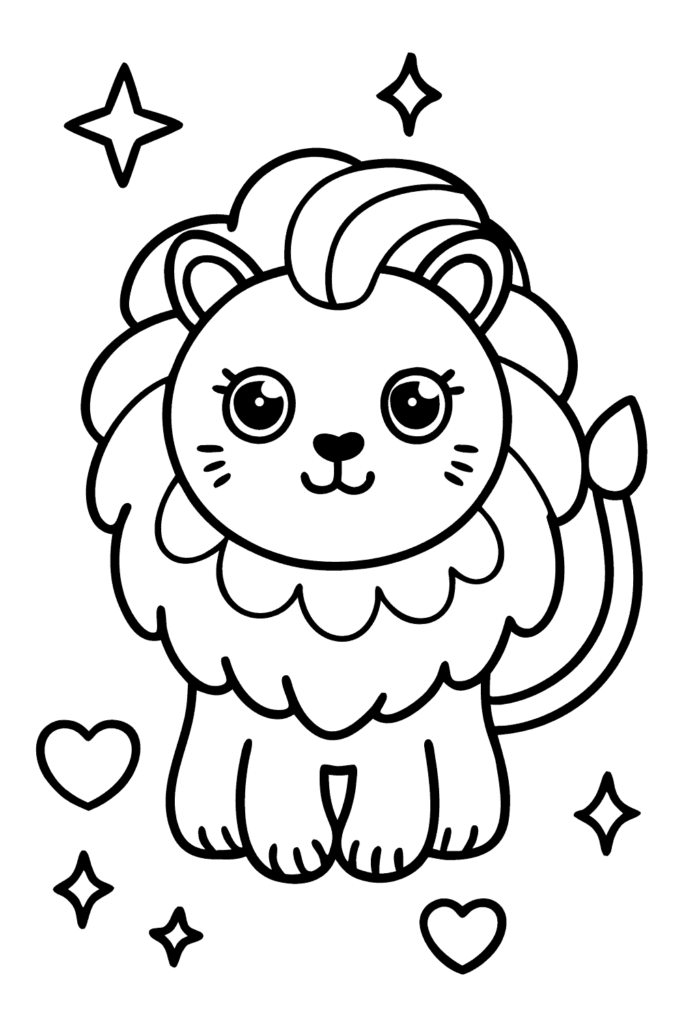 El estilo kawaii con colores de arcoíris completos hace que este león sea alegre e inclusivo. Es excelente para crear arte que celebre diversidad, aceptación y encontrar magia en las diferencias hermosas naturales.