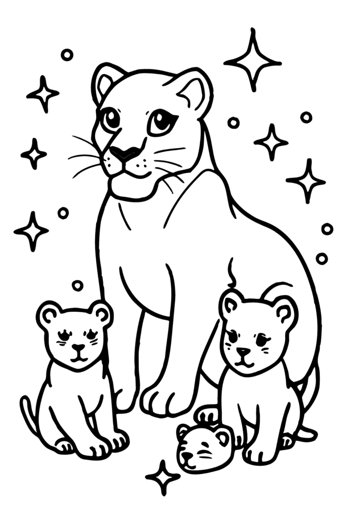 El estilo de caricatura con ternura maternal hace que esta leona sea amorosa y dedicada. Es perfecto para representar maternidad, familia y mostrar que las leonas son el corazón verdadero de la manada siempre.