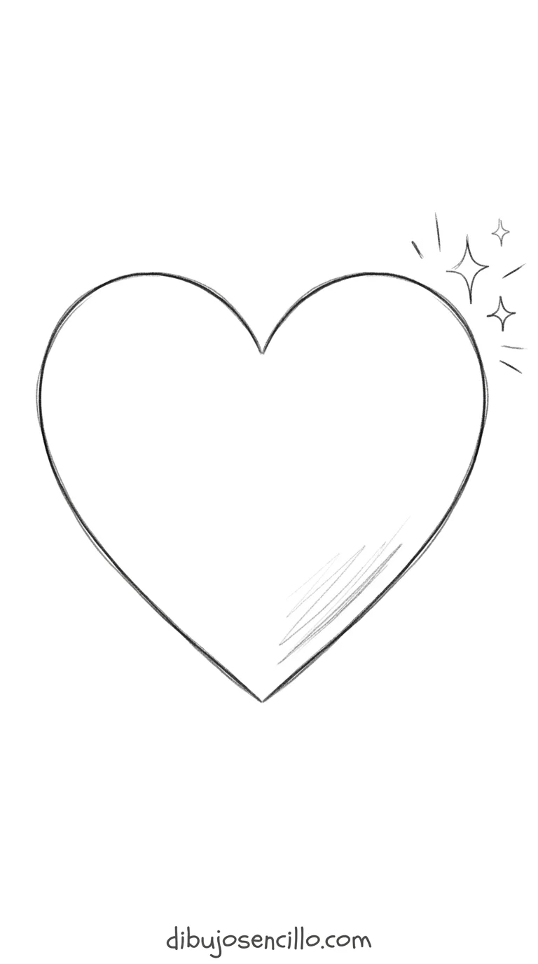 Un corazón simétrico perfecto con curvas suaves trazado a lápiz mostrando forma universal del amor. El contorno limpio y trazo uniforme crean símbolo romántico clásico fácil de reproducir.