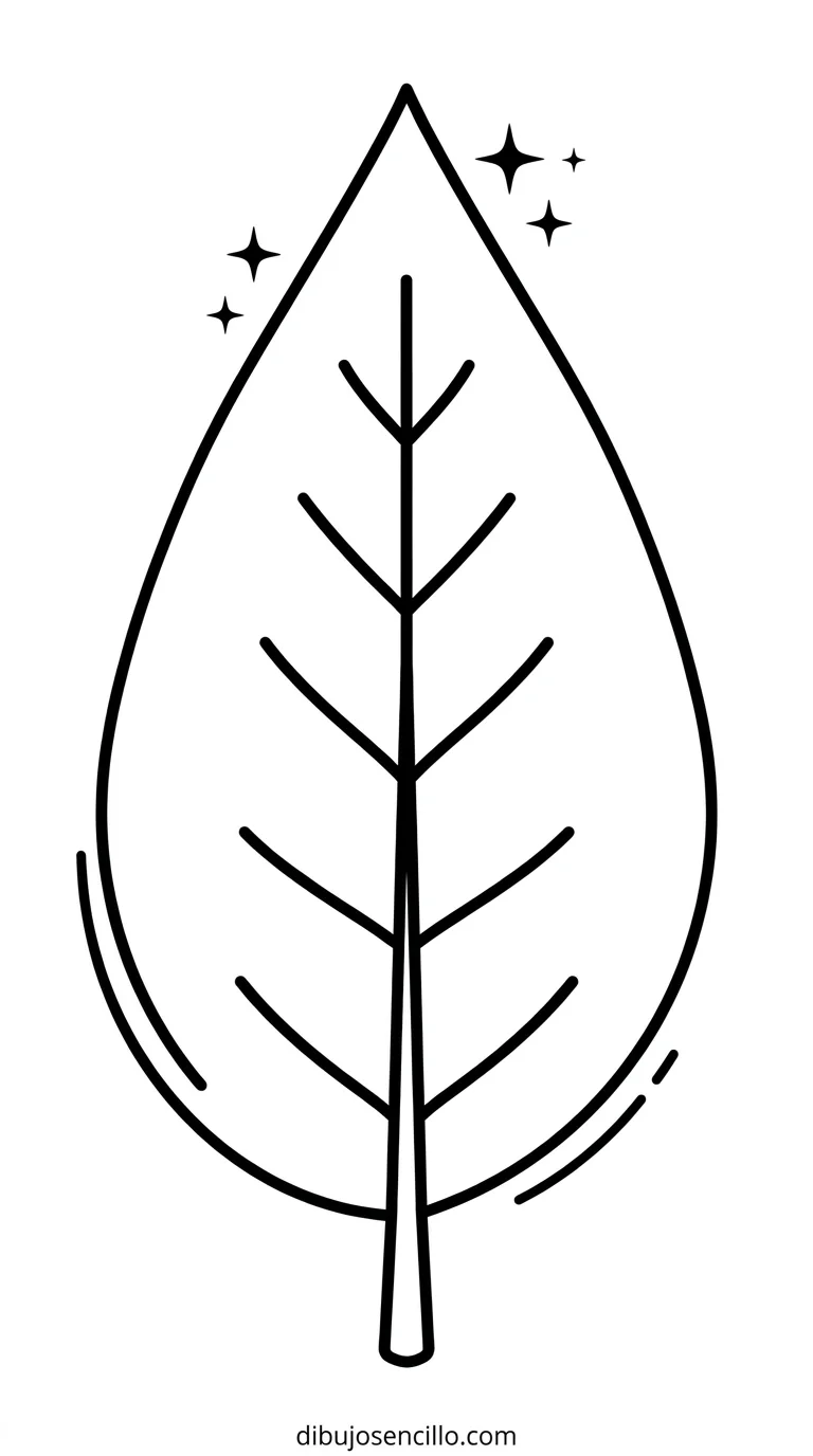 Hoja botánica con nervadura central y contorno orgánico dibujada con detalle básico