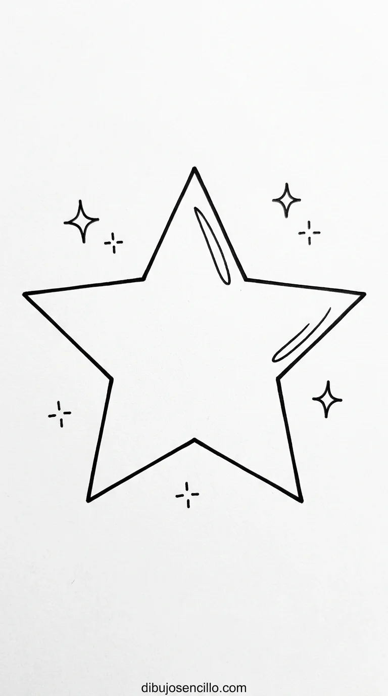 El estilo geométrico con ángulos precisos hace que esta estrella sea educativa y práctica. Es ideal para aprender a dibujar líneas rectas y formas angulares con exactitud.
