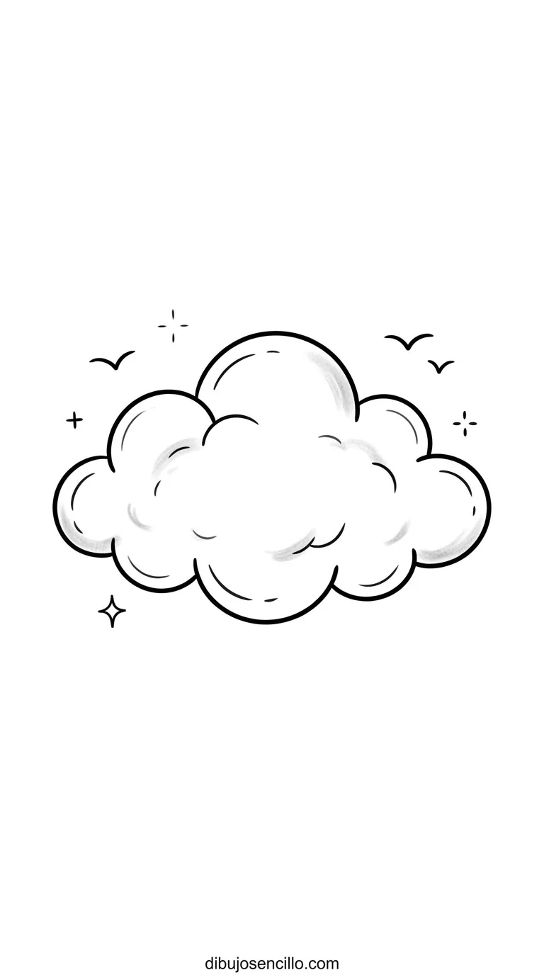 El estilo suave con curvas conectadas hace que esta nube sea simple y relajante. Es ideal para practicar líneas curvas fluidas y sombreado básico con lápiz.