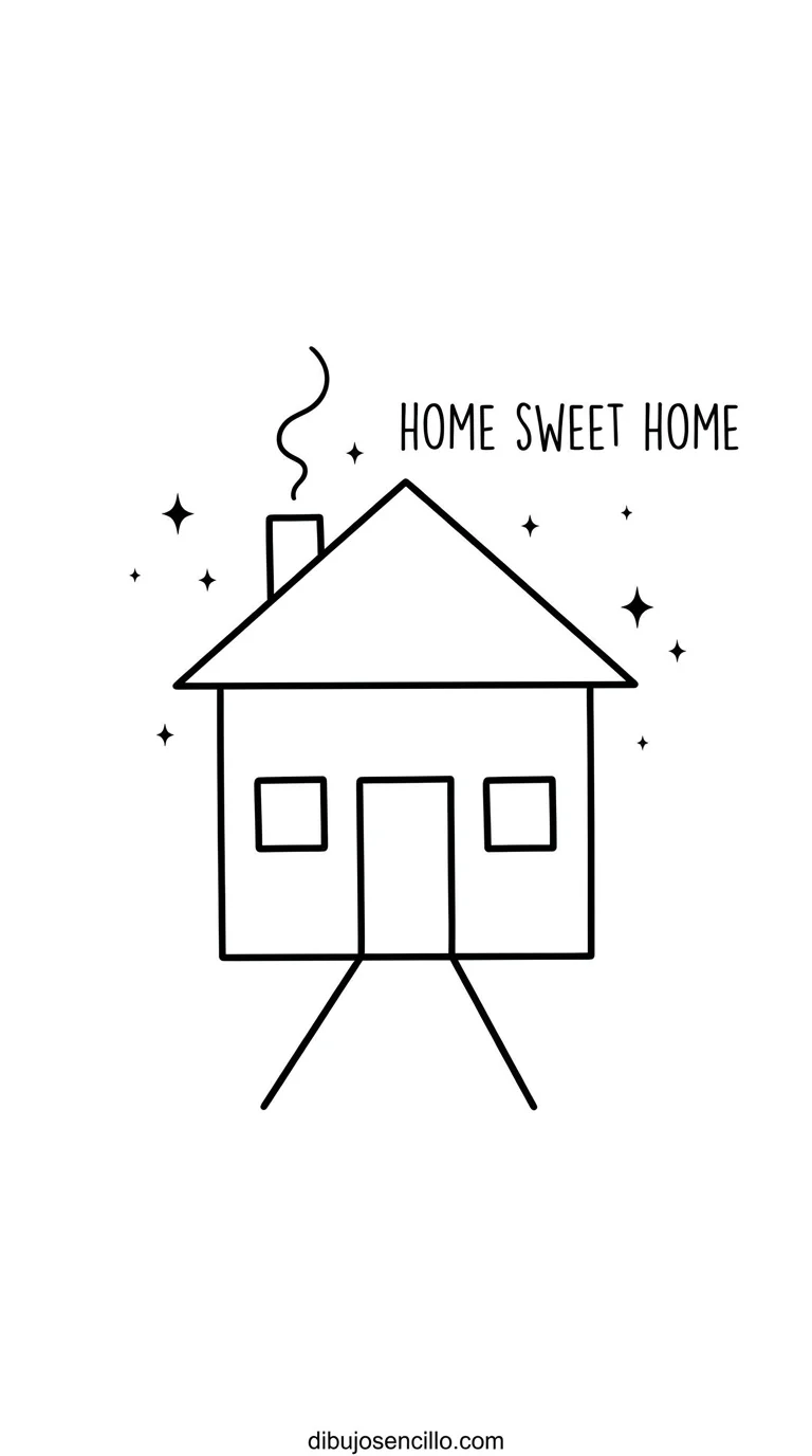 Casa clásica dibujada con formas geométricas básicas y líneas rectas