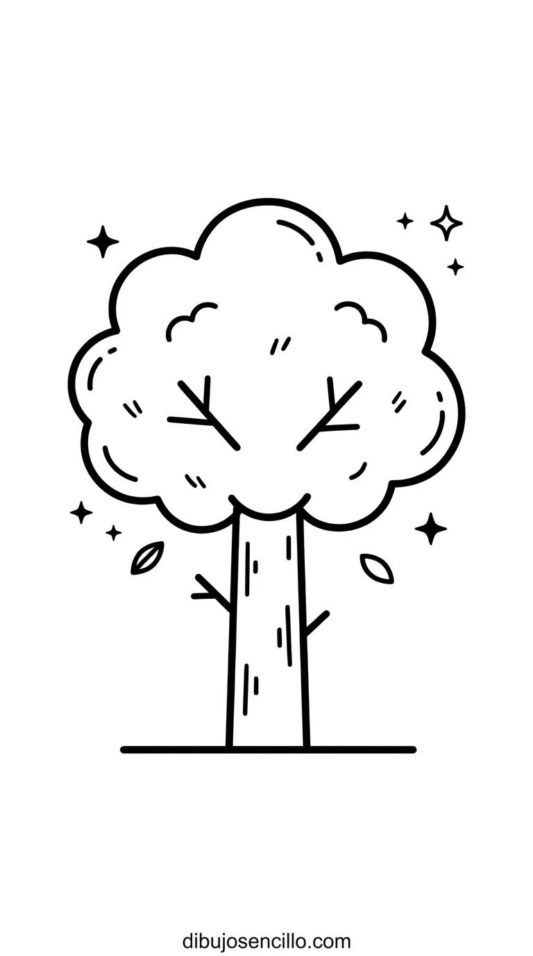 Árbol estilizado con follaje redondo y tronco recto dibujado con trazos simples