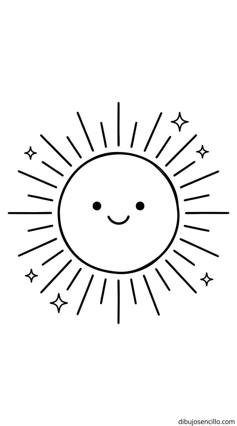 El estilo radiante con diseño simétrico hace que este sol sea motivador y alegre. Es ideal para practicar líneas que irradian desde un centro y crear expresiones felices.