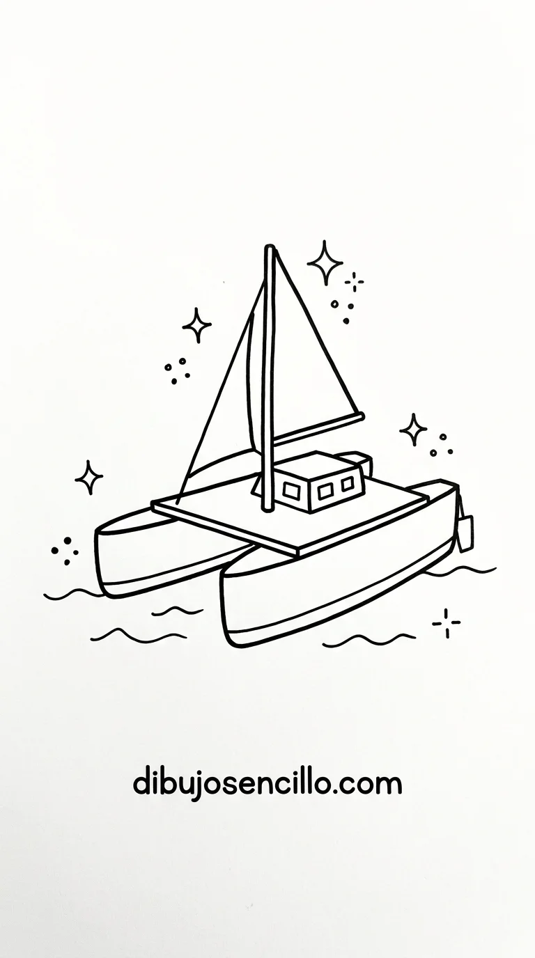 - Comienza con lápiz: Dibuja un rectángulo para el casco y triángulos para las velas