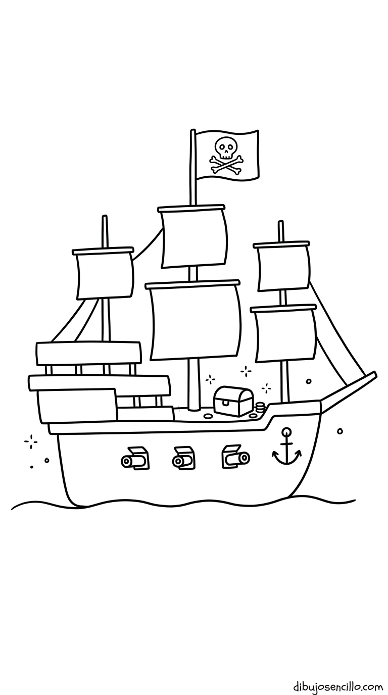 El estilo aventurero hace que este barco pirata sea emocionante y simple. Es ideal para practicar múltiples niveles y símbolos de piratería clásica marina.