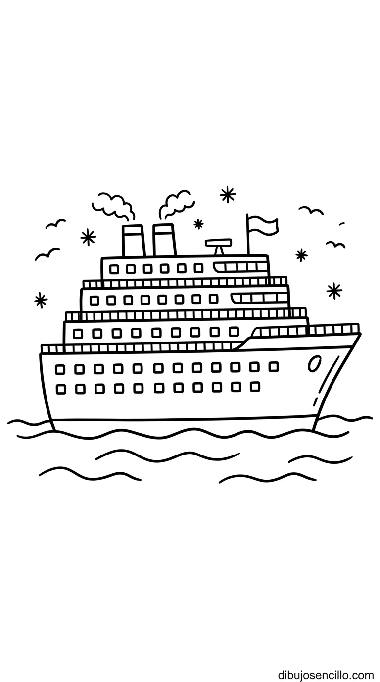 - Añade líneas de agua: Pequeñas olas debajo del barco hacen tus dibujos más realistas marinos