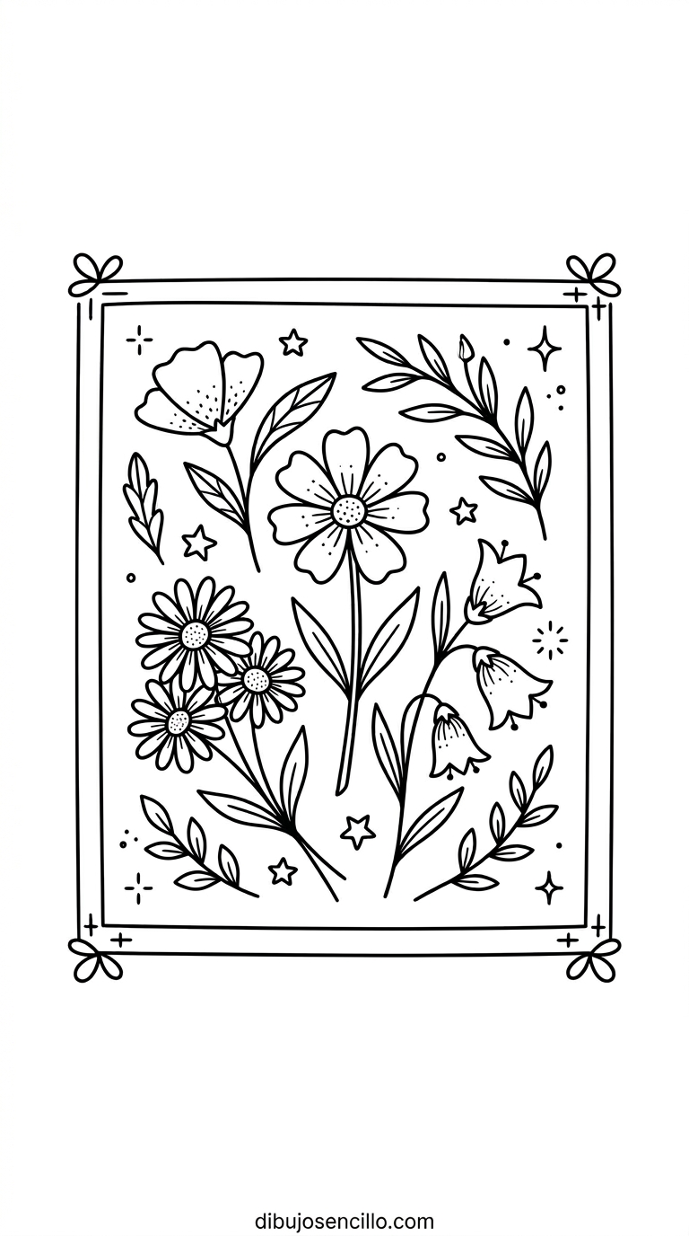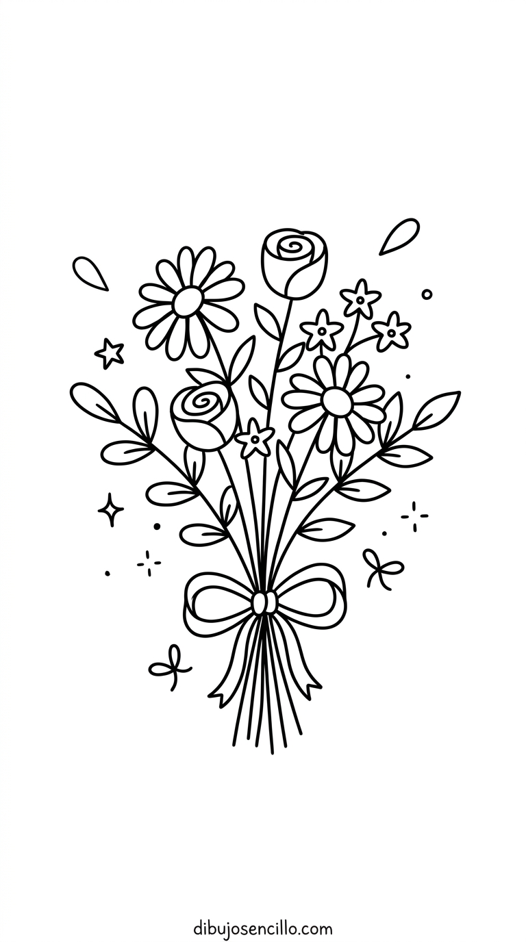 El ramo silvestre enseña a combinar diferentes tipos de flores simples en una composición unificada por el lazo que las reúne. Es el dibujo floral aesthetic más versátil y satisfactorio para principiantes porque no requiere perfección sino naturalidad en cada trazo de pétalo y hoja.