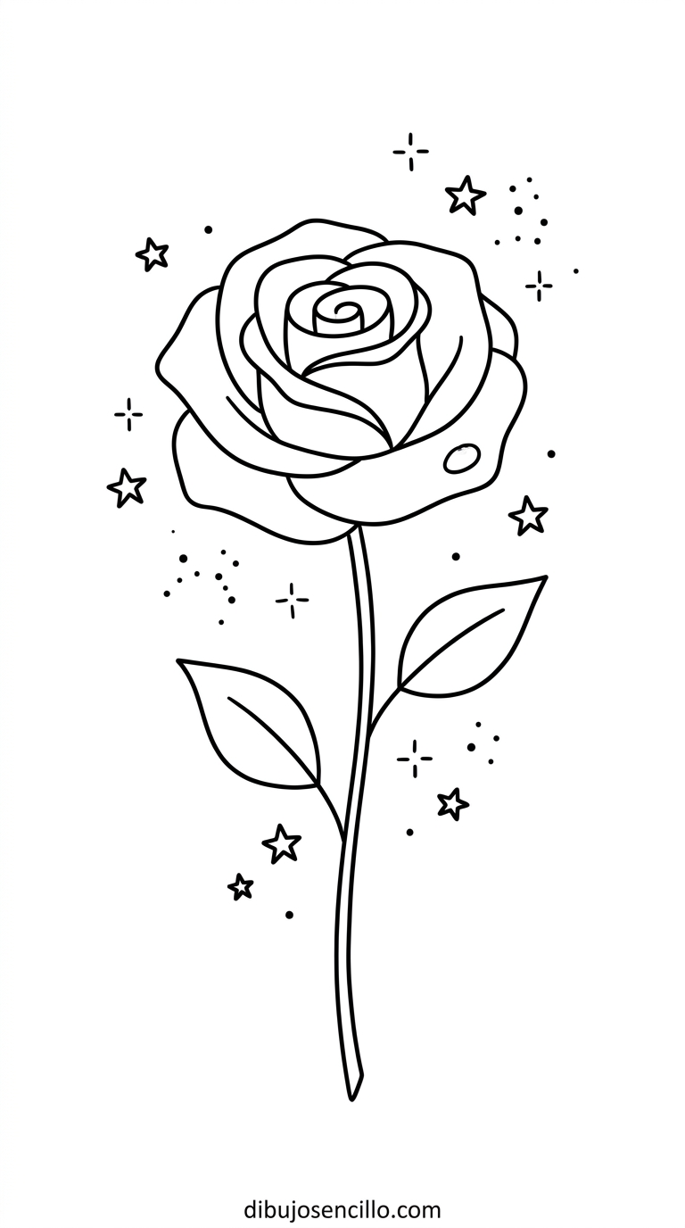 La rosa con estrellas enseña a dibujar la rosa en espiral paso a paso y a distribuir estrellas de diferentes tamaños alrededor del sujeto principal para crear profundidad y atmósfera. Es uno de los motivos florales aesthetic más populares por su carga romántica y su elegancia visual inconfundible.
