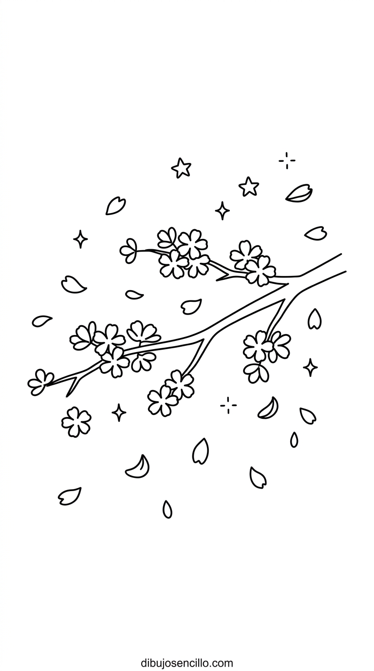 La flor de cerezo enseña a crear la sensación de movimiento y caída usando pétalos sueltos en diferentes orientaciones dispersos alrededor de la rama principal. Es el dibujo floral aesthetic más filosófico y emotivo del repertorio por su profundo significado cultural sobre la transitoriedad de la belleza.
