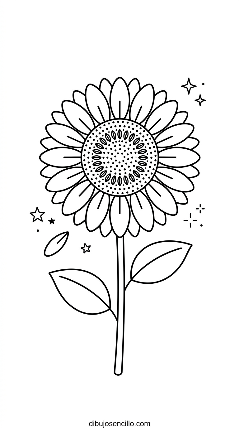 Un girasol de pétalos generosos y centro detallado que irradia alegría y luz desde el papel, la flor más luminosa y optimista del universo floral aesthetic. Su centro con patrón de puntos añade textura y detalle botánico sin complicar el proceso de dibujo.