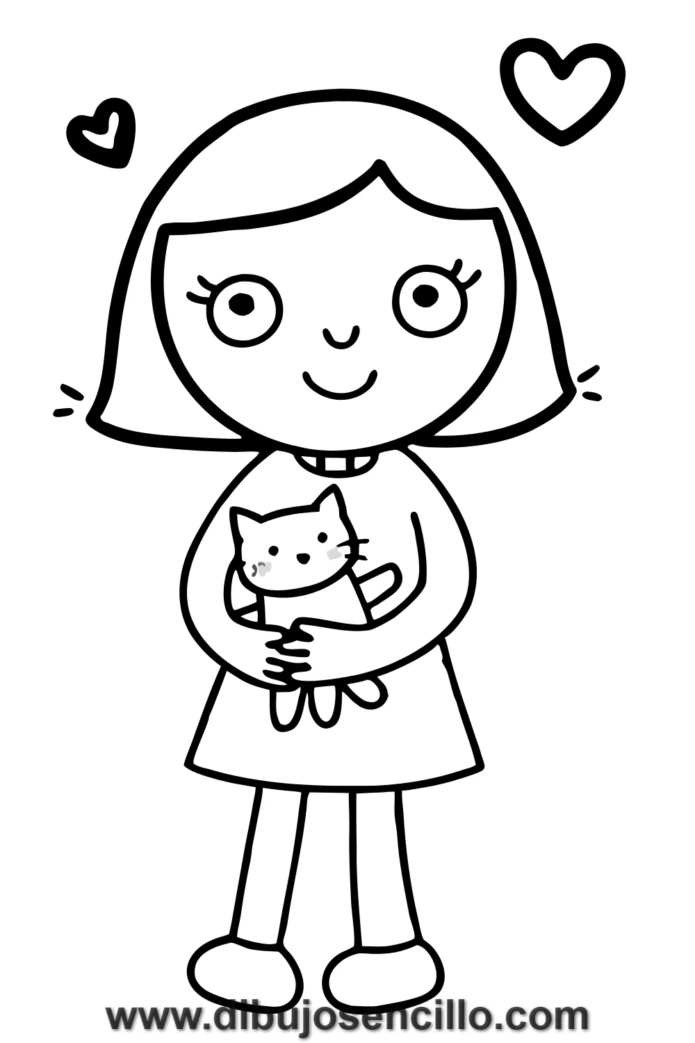 Este diseño combina dos de los personajes más queridos del dibujo animado —la chica kawaii y el gatito— en una escena de afecto y conexión. Es ideal para ilustraciones sobre el amor por las mascotas y la amistad entre personas y animales.
