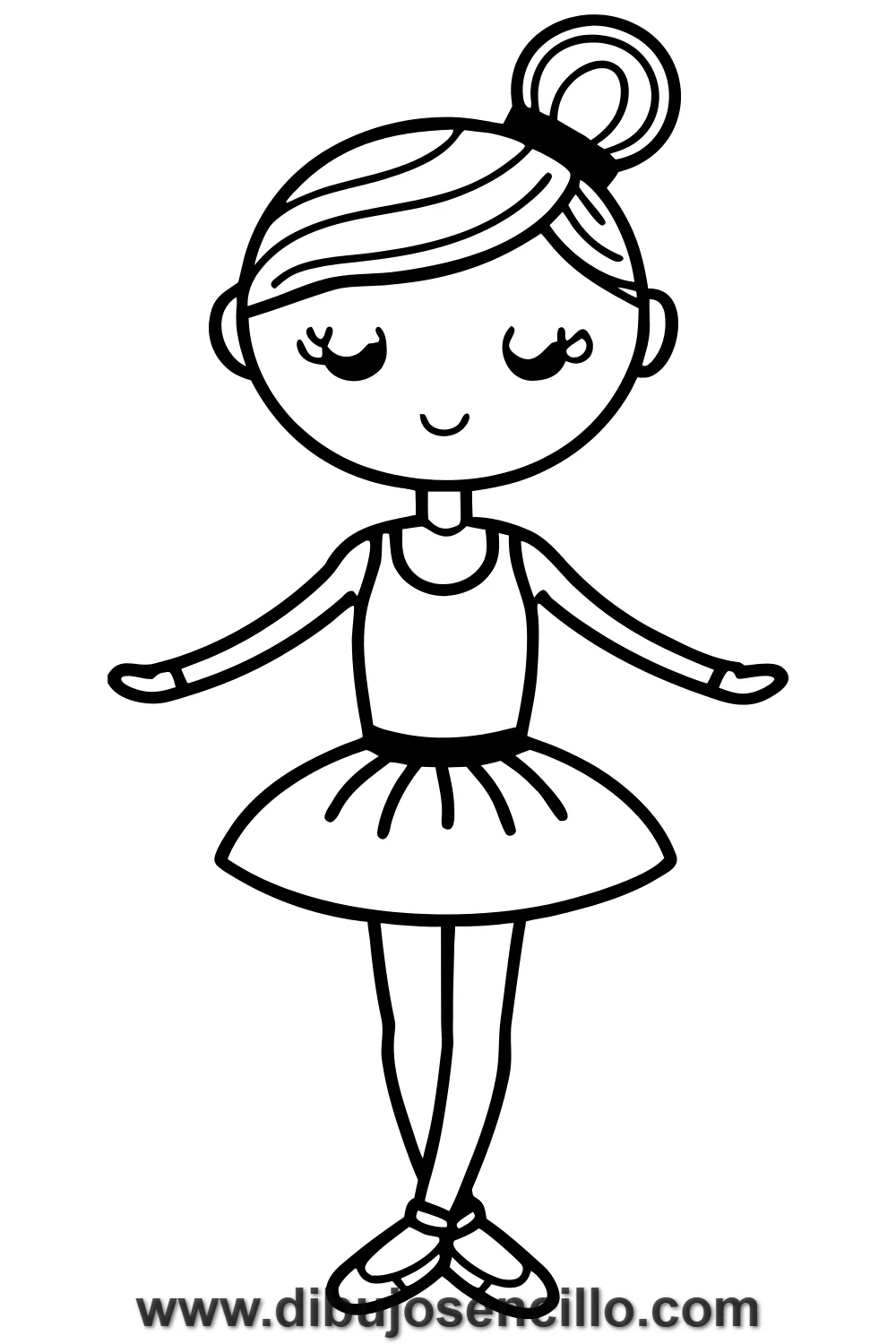 Una bailarina de ballet grácil y delicada con su tutú esponjoso y su moño perfecto, capturada en una pose de danza llena de elegancia y ligereza. Su silueta curva y equilibrada transmite música y movimiento con muy pocos trazos.