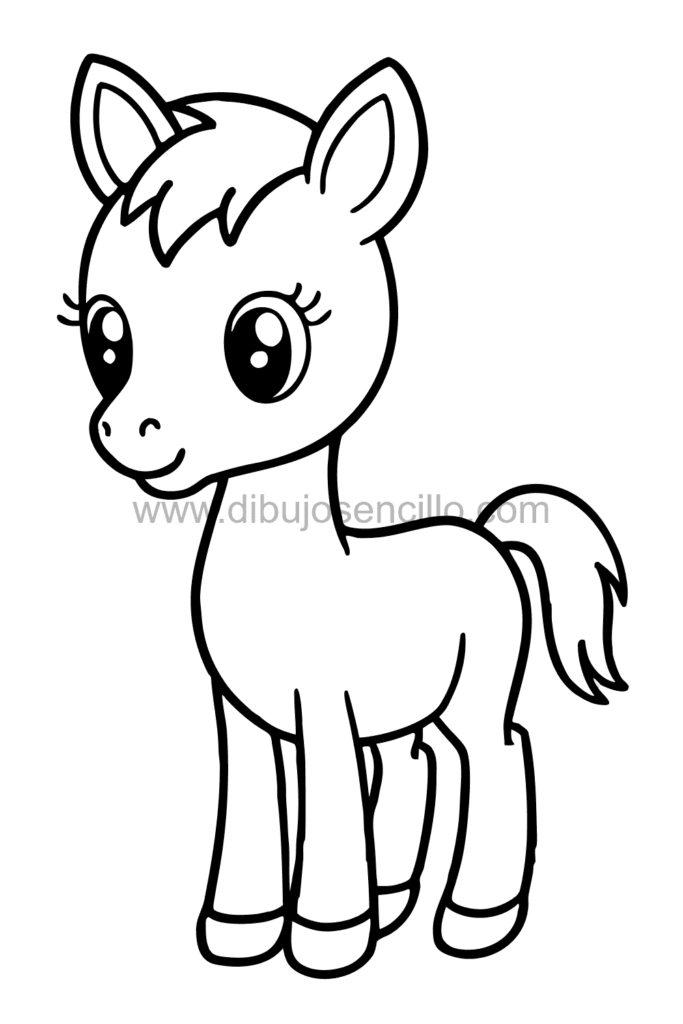 El estilo kawaii hace que este potro bebé sea irresistible y simple. Es perfecto para practicar óvalos y líneas delgadas como patas frágiles.