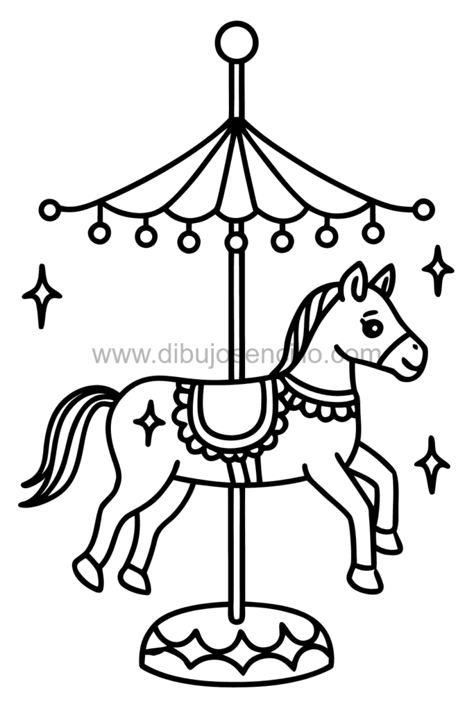 El estilo festivo hace que este caballo carrusel sea encantador y simple. Es ideal para practicar detalles decorativos y elementos de entretenimiento vintage.