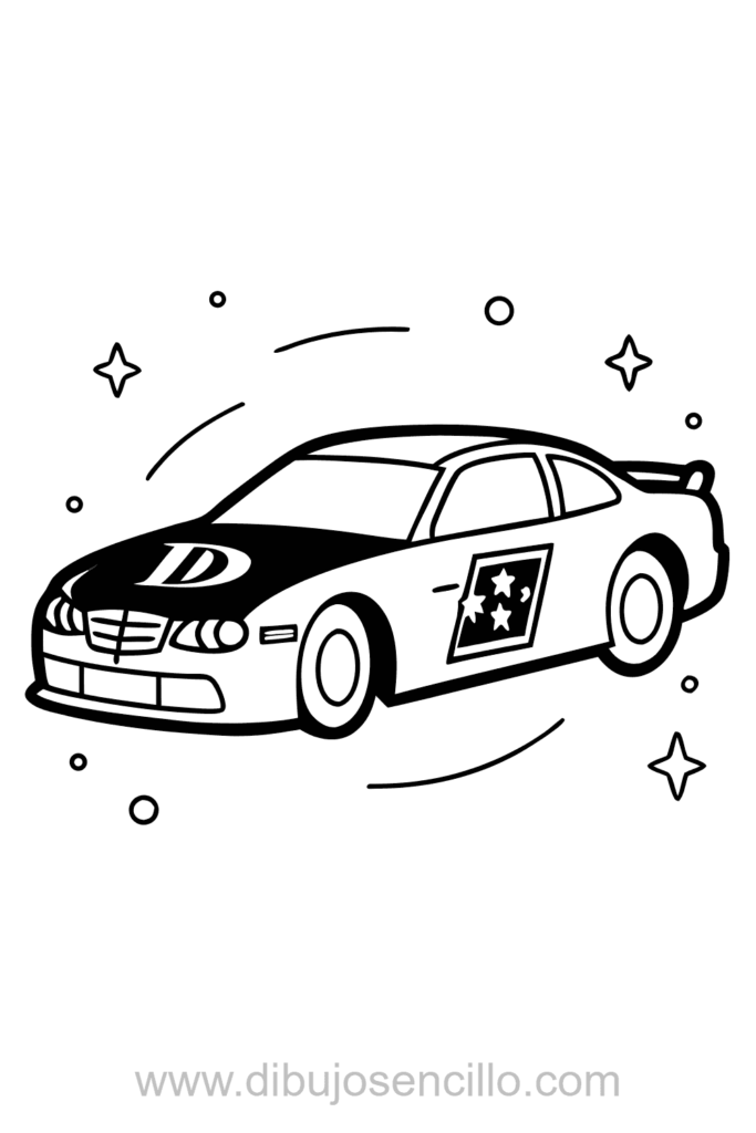 El estilo competitivo hace que este NASCAR sea profesional y simple. Es perfecto para practicar formas aerodinámicas y números identificadores grandes deportivos.