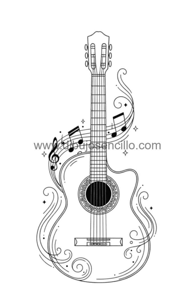 11+ Ideas Fáciles de Dibujos de Guitarra