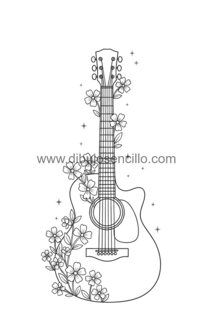 Estás en el lugar perfecto. Las guitarras son instrumentos icónicos y versátiles con su forma elegante característica, perfectas para crear dibujos llenos de ritmo y expresión musical.