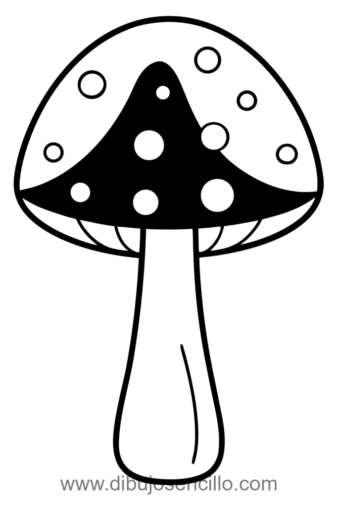 El estilo simple hace que este hongo venenoso sea reconocible y fácil. Es perfecto para practicar semicírculos y distribuir puntos uniformemente sobre superficie.