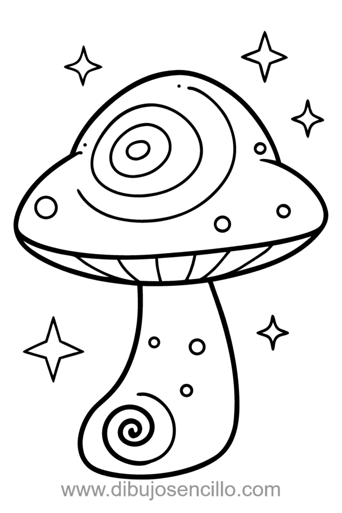 El estilo fantasioso hace que este hongo espiral sea artístico y simple. Es ideal para practicar patrones de espirales y diseños creativos.