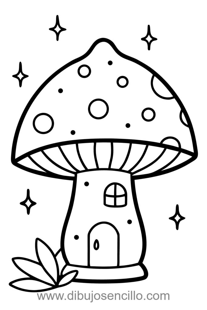 El estilo fantasioso hace que este hongo casa sea encantador y simple. Es ideal para practicar detalles arquitectónicos en formas naturales básicas.