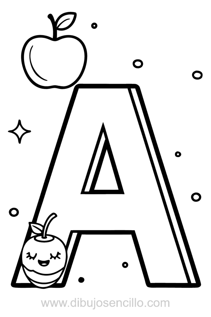 El estilo educativo hace que esta letra A sea didáctica y simple. Es perfecta para practicar letras mayúsculas y asociar sonidos con imágenes.