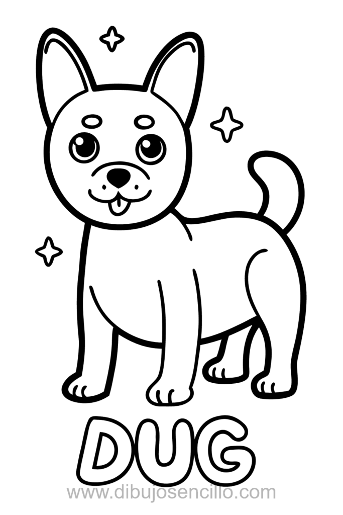 El estilo amigable hace que este perro sea doméstico y simple. Es ideal para practicar vocabulario de animales domésticos y mascotas comunes.