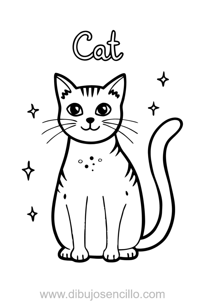El estilo didáctico hace que este gato etiquetado sea educativo y simple. Es ideal para practicar vocabulario de animales con representación visual clara.