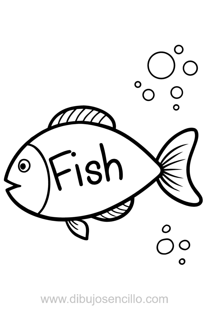 El estilo acuático hace que este pez sea marino y simple. Es ideal para practicar vocabulario de animales y criaturas del océano.