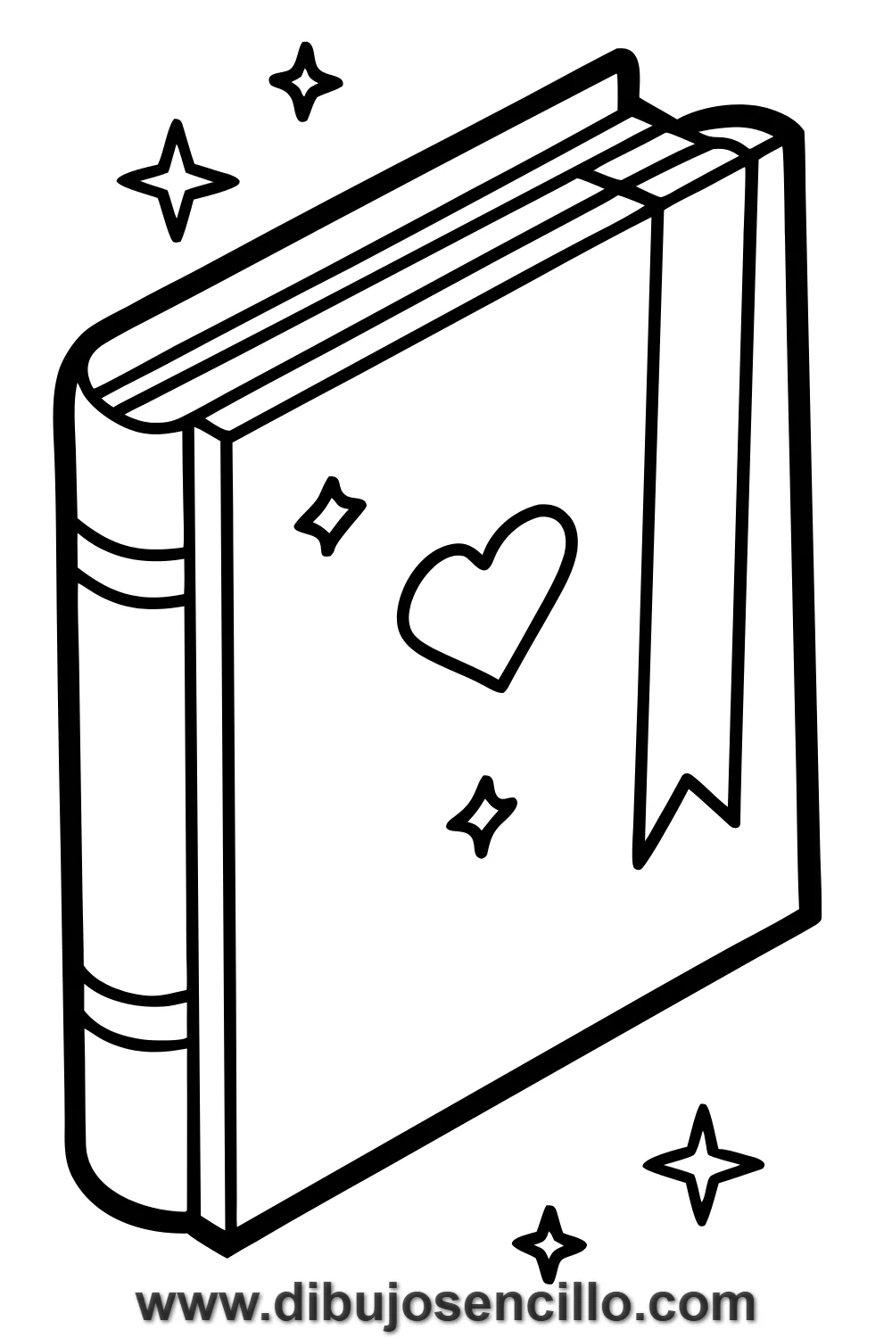 Este diseño enseña a combinar el rectángulo del libro con la forma más emotiva del repertorio gráfico: el corazón. Es perfecto para tarjetas de San Valentín literarias, regalos para amantes de los libros y decoraciones de espacios de lectura.