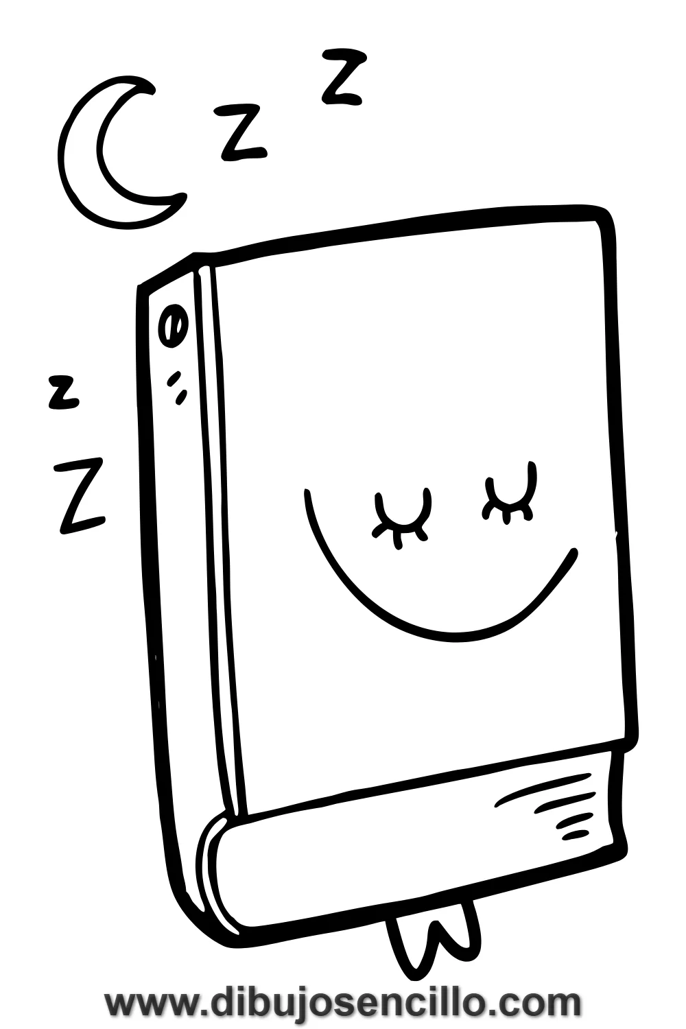 Un libro soñoliento que se ha quedado dormido junto a su luna de compañía, con sus ojitos cerrados en suaves curvas y sus Zs flotando dulcemente en el aire. Esta imagen tan tierna sugiere que incluso los libros necesitan descansar después de tantas aventuras.