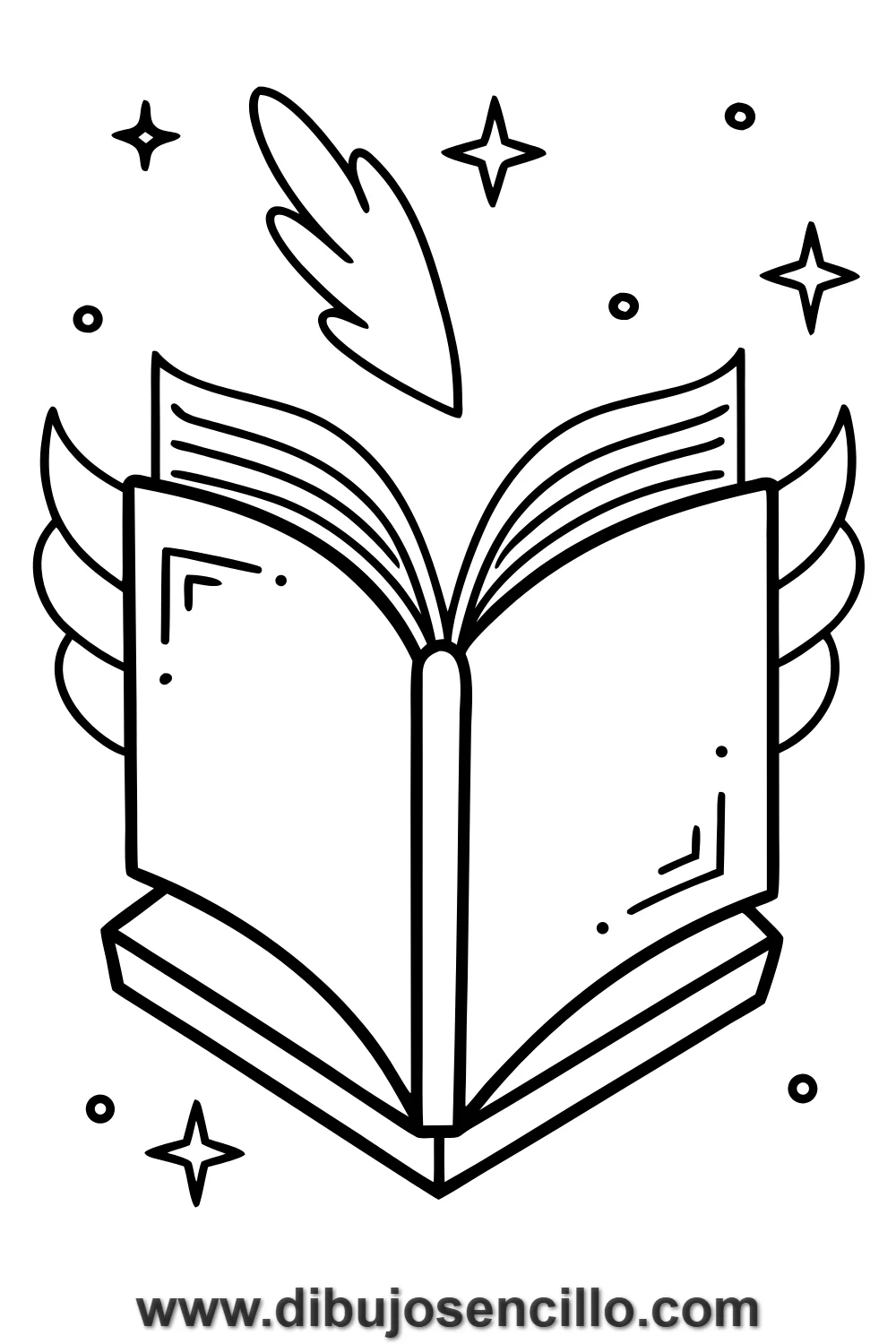 El libro abierto es uno de los símbolos más universales del conocimiento y la imaginación. Dibujarlo enseña a crear perspectiva y profundidad básica usando rectángulos ligeramente modificados con curvas suaves.