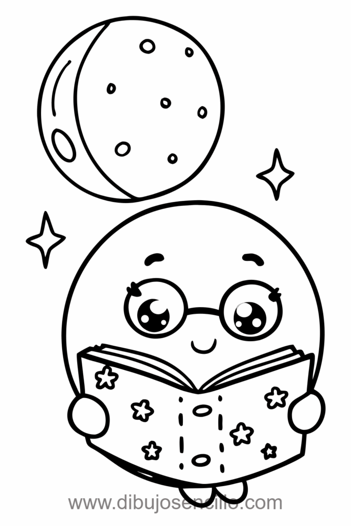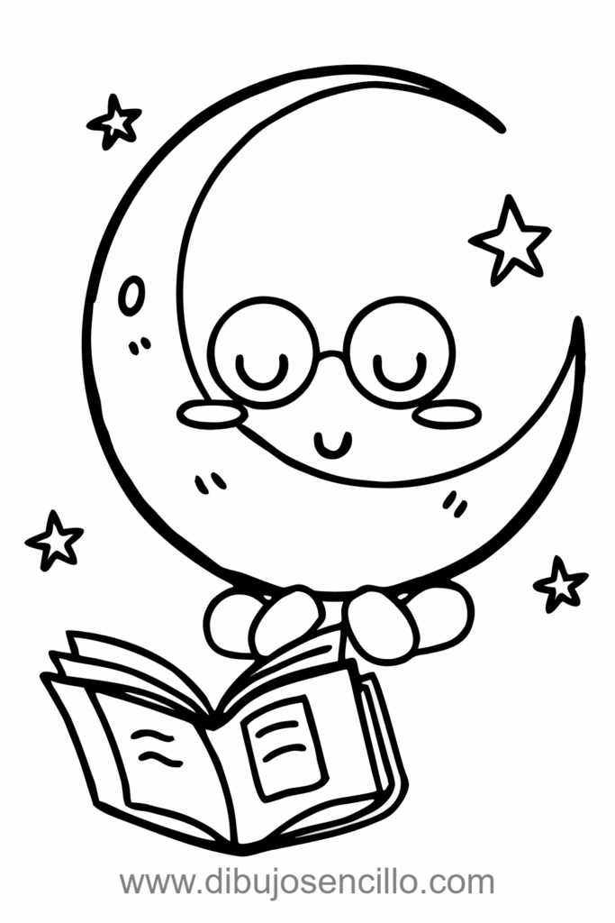 El estilo kawaii con tema intelectual hace que esta luna sea estudiosa y admirable. Es ideal para promover lectura nocturna y representar adquisición de conocimiento como actividad tranquila placentera.