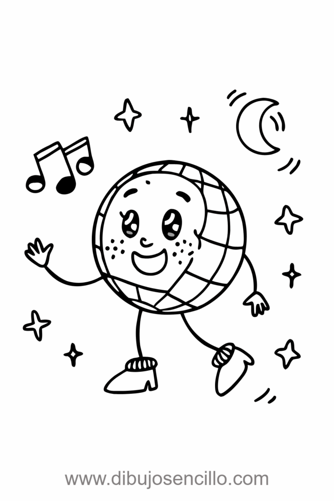 Una luna en pose de baile con estrellas como parejas mostrando movimiento y alegría en baile celestial. Las notas musicales y planeta bola disco crean atmósfera de fiesta espacial divertida. Las líneas de movimiento fluidas y pista de baile de nubes capturan la energía dinámica del evento.
