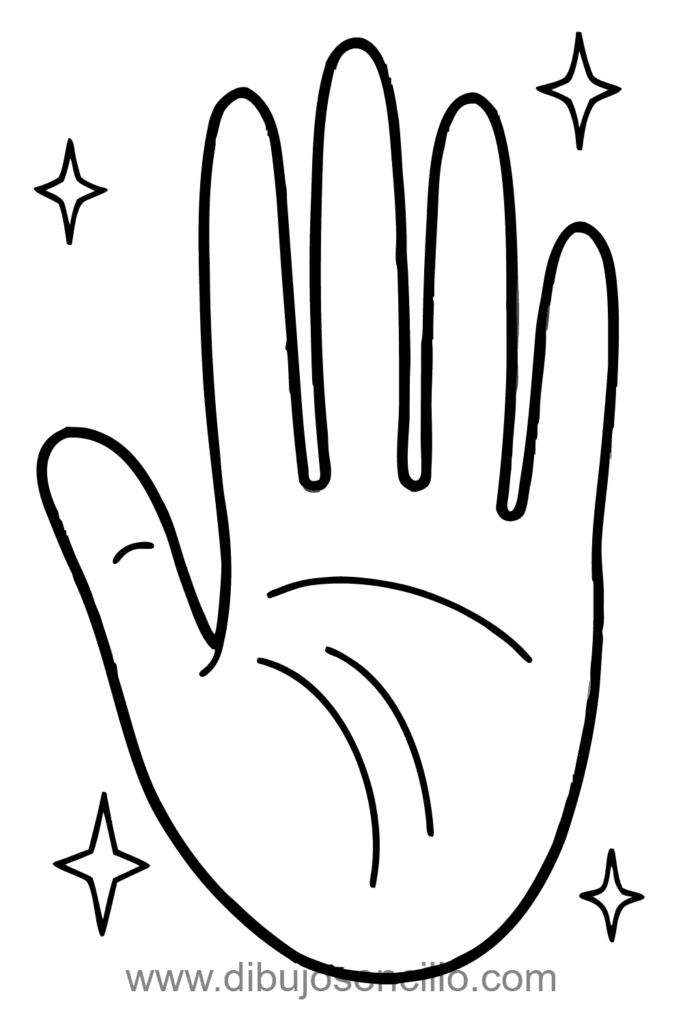 - Comienza con lápiz: Dibuja un óvalo para la palma y líneas simples para los dedos