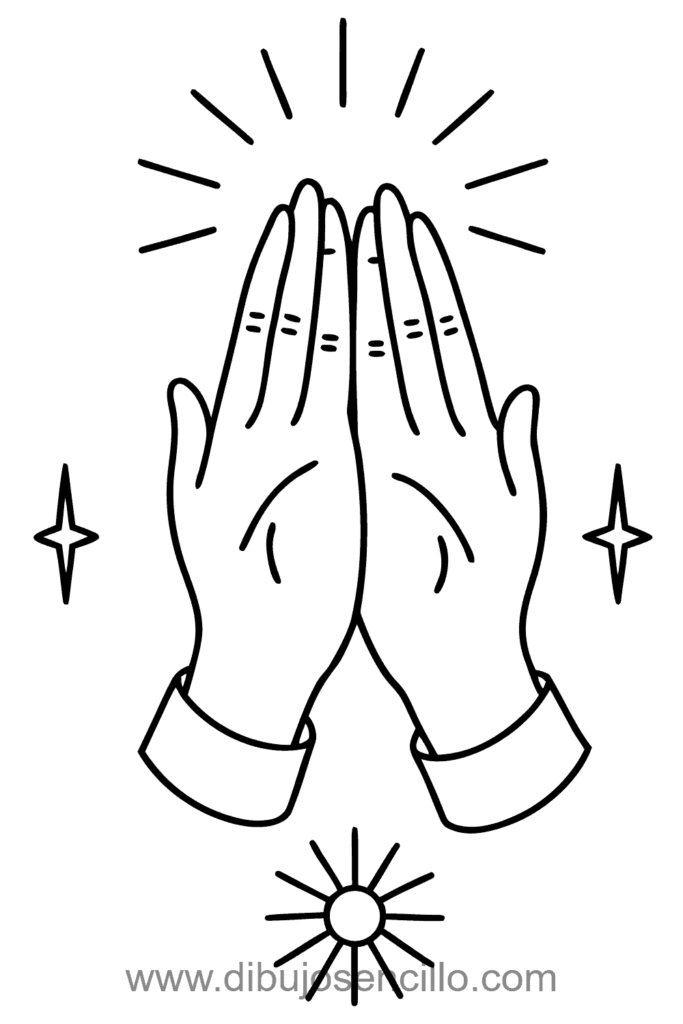 El estilo sereno hace que estas manos orantes sean contemplativas y simples. Es perfecto para practicar simetría vertical y dedos alineados juntos.