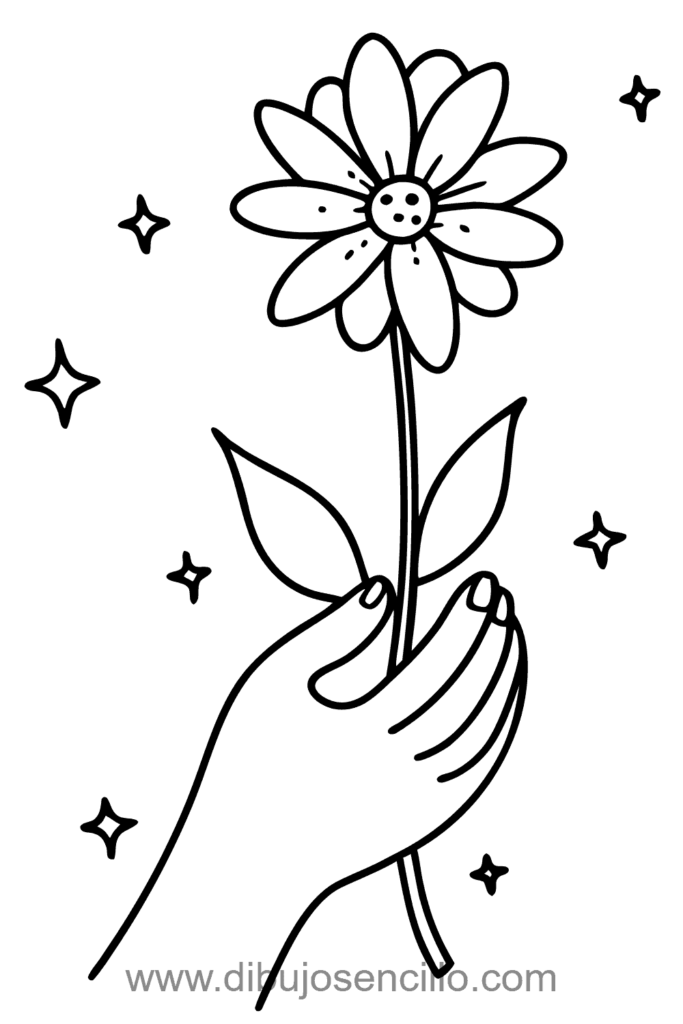 Una mano delicada sosteniendo flor simple entre dedos con cuidado gentil. El tallo delgado y gesto tierno crean ofrenda natural romántica hermosa.