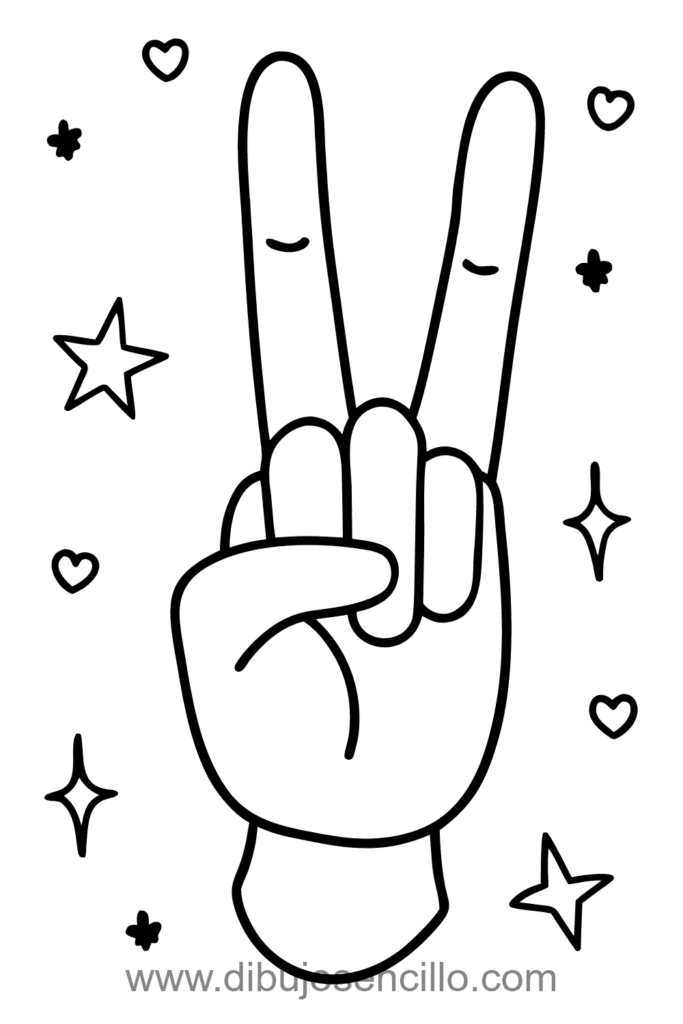 El estilo simple hace que este gesto paz sea simbólico y fácil. Es perfecto para practicar líneas en ángulo y gestos expresivos básicos.