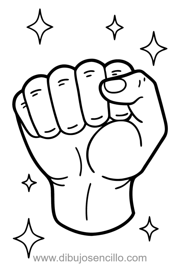 Un puño cerrado firmemente con todos los dedos enrollados hacia palma. La forma compacta y líneas de nudillos crean símbolo de fuerza.
