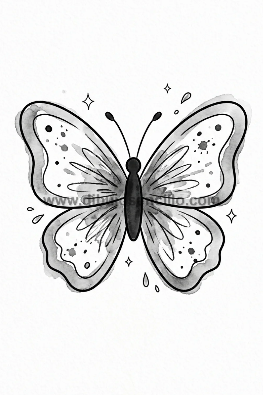 - Tip especial: Las antenas de la mariposa se dibujan con dos líneas curvas finas que terminan en una pequeña bolita, añadiendo ese detalle característico que hace que cualquier mariposa se vea completa y auténtica.