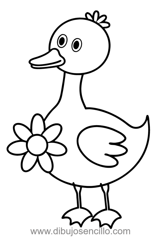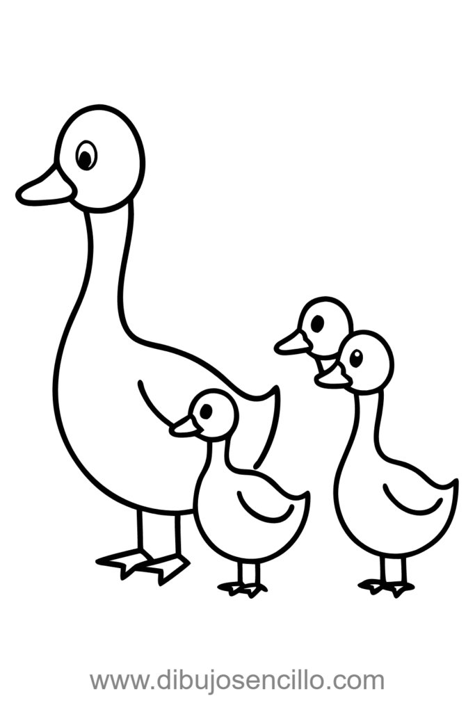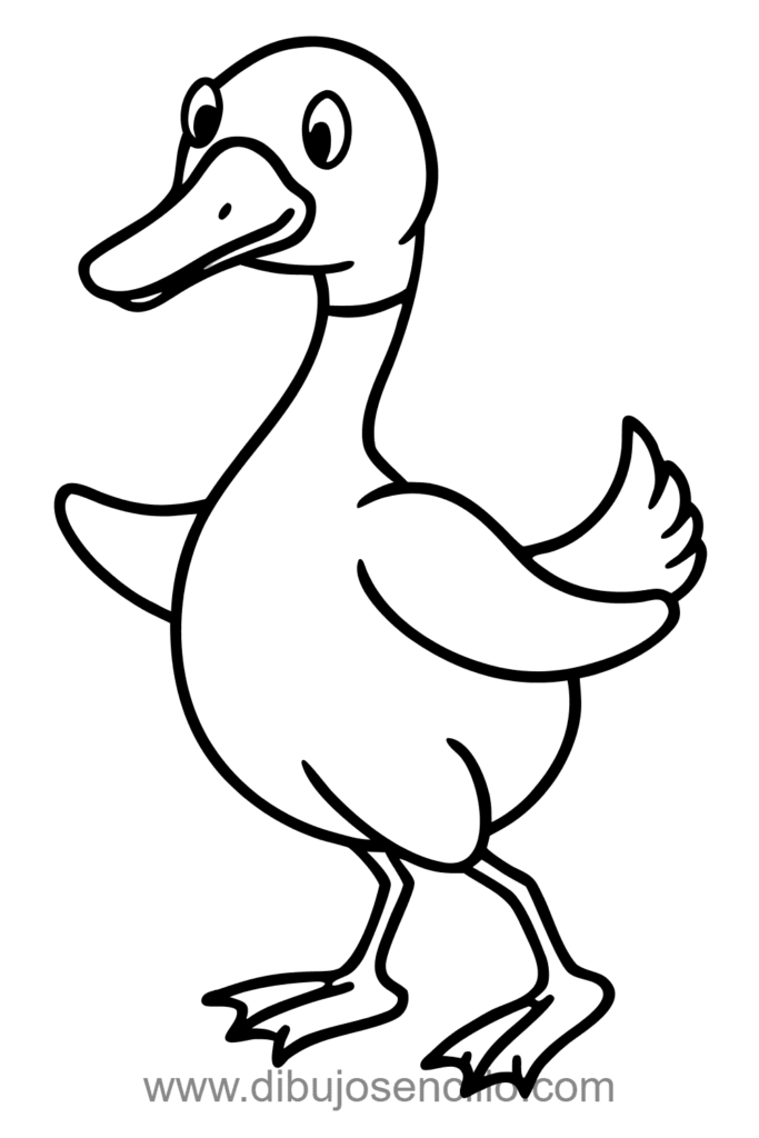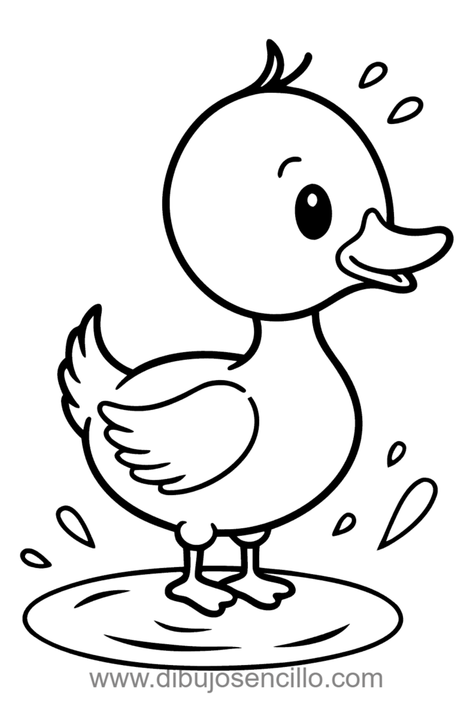 - Tip especial: El pico plano del pato se dibuja fácilmente con dos líneas curvas paralelas que forman un triángulo achatado.