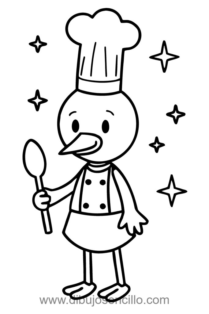 Un pato chef con su alto sombrero blanco de cocinero y su cuchara lista para preparar la mejor receta del estanque. La combinación del cuerpo redondo del pato con el sombrero rectangular crea un contraste cómico perfecto.