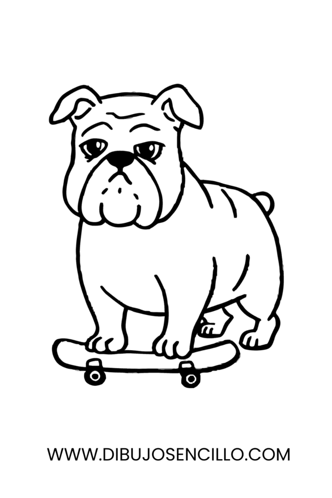 Un Bulldog Inglés robusto y musculoso con cara arrugada, prognatismo y patas cortas luciendo rudo pero dulce. La patineta de mascota y gota de baba añaden elementos icónicos asociados con bulldogs culturalmente. El exterior duro con corazón suave representa perfectamente la personalidad contradictoria pero encantadora de esta raza única.