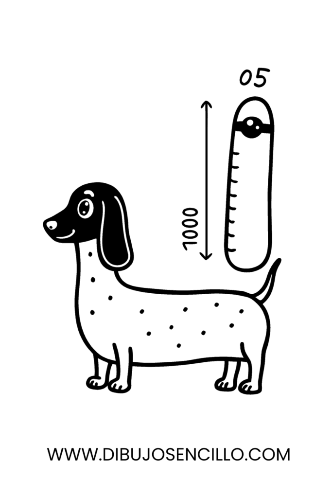 El estilo kawaii con humor visual hace que este perro salchicha sea divertido y memorable. Es excelente para practicar proporciones extremas y crear dibujos que hagan sonreír con forma única.