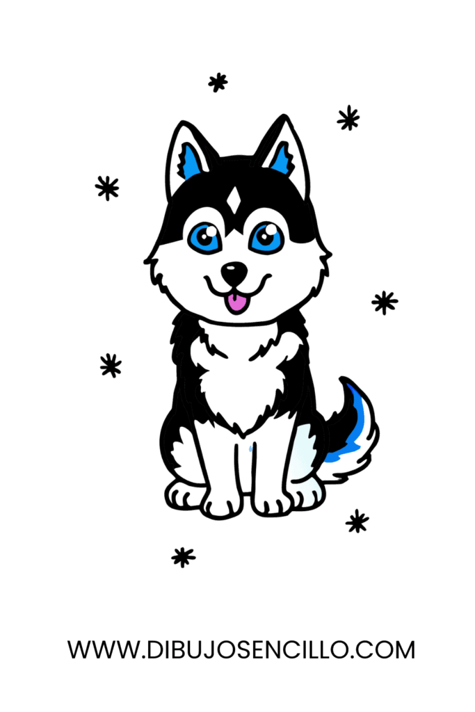 El estilo kawaii con ojos azules prominentes hace que este Husky sea misterioso y hermoso. Es ideal para practicar marcas faciales distintivas y capturar razas con características únicas memorables.