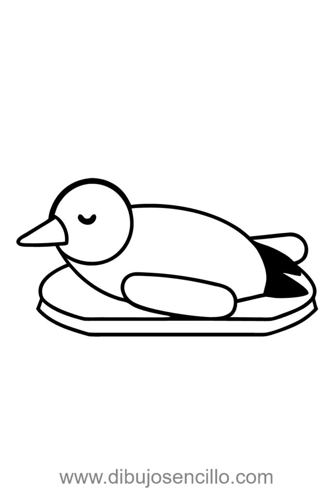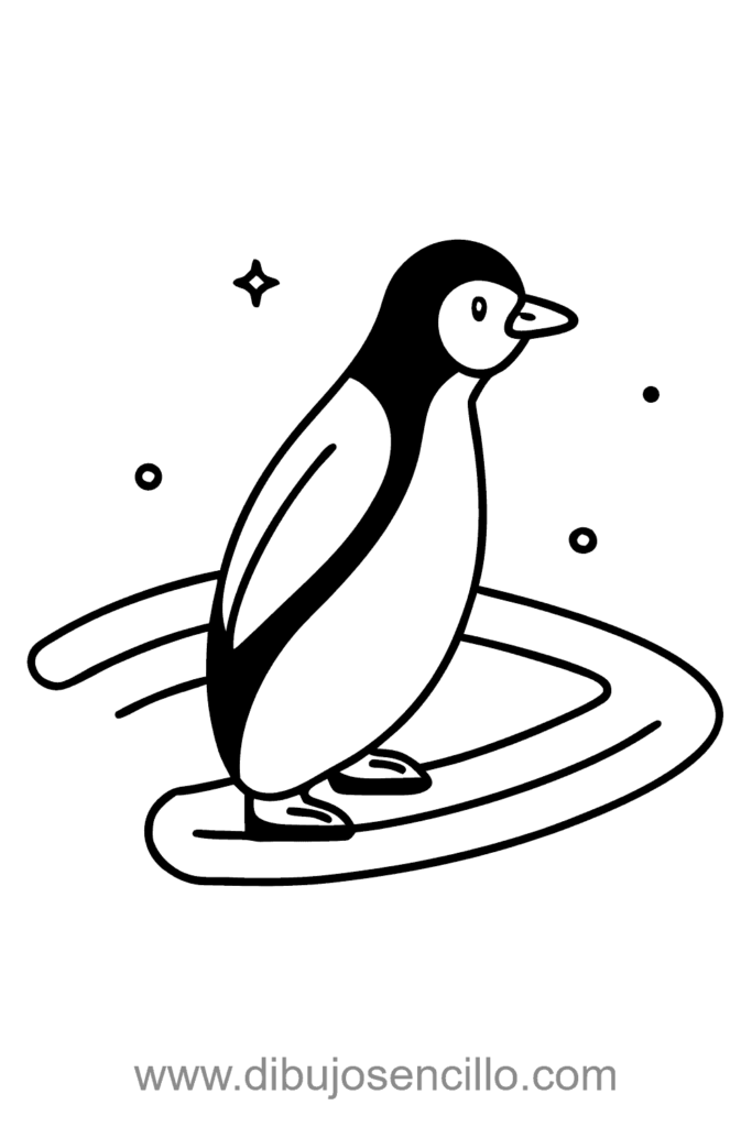 El estilo dinámico hace que este pingüino deslizante sea juguetón y simple. Es ideal para practicar formas horizontales y añadir efectos de movimiento.