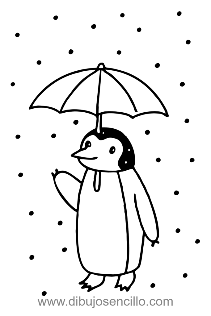 El estilo kawaii hace que este pingüino con paraguas sea tierno y simple. Es perfecto para practicar añadir objetos sostenidos y efectos de nieve.