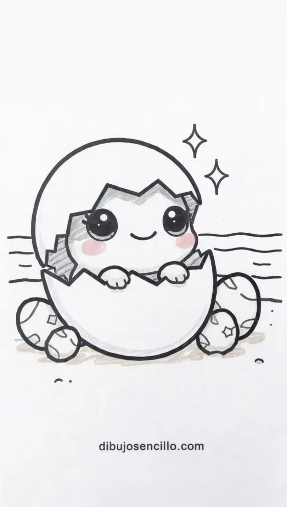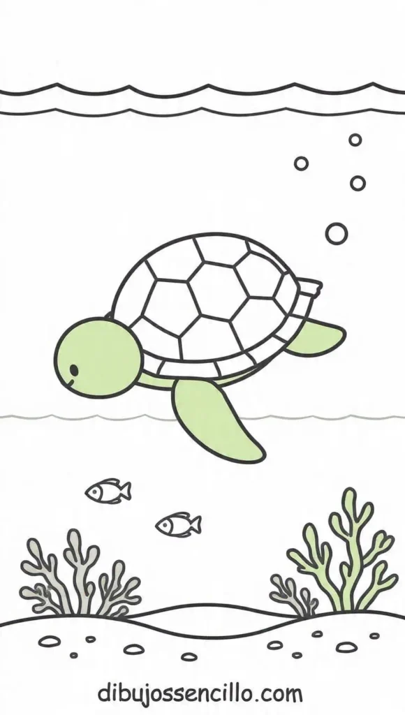 - Comienza con lápiz: Dibuja primero el caparazón ovalado o redondeado, luego añade cabeza, patas y cola alrededor.